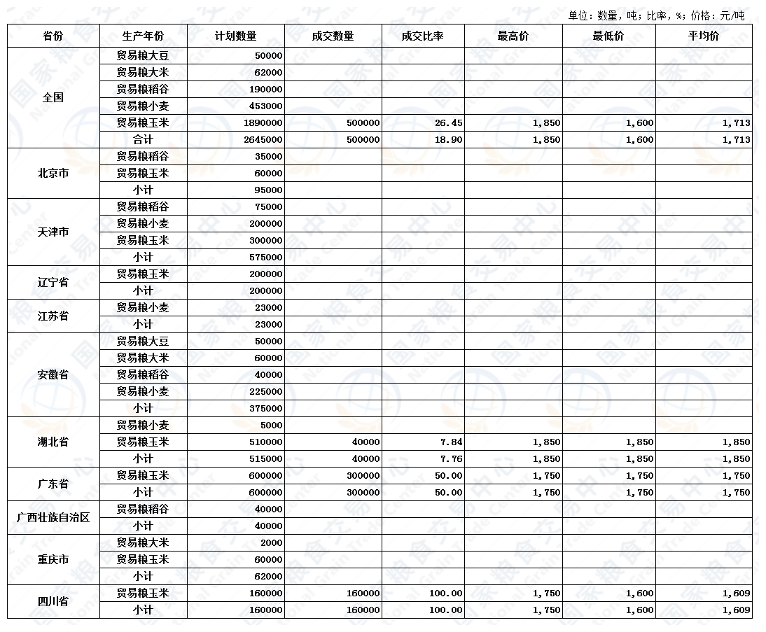 8月17日贸易粮协商交易采购结果